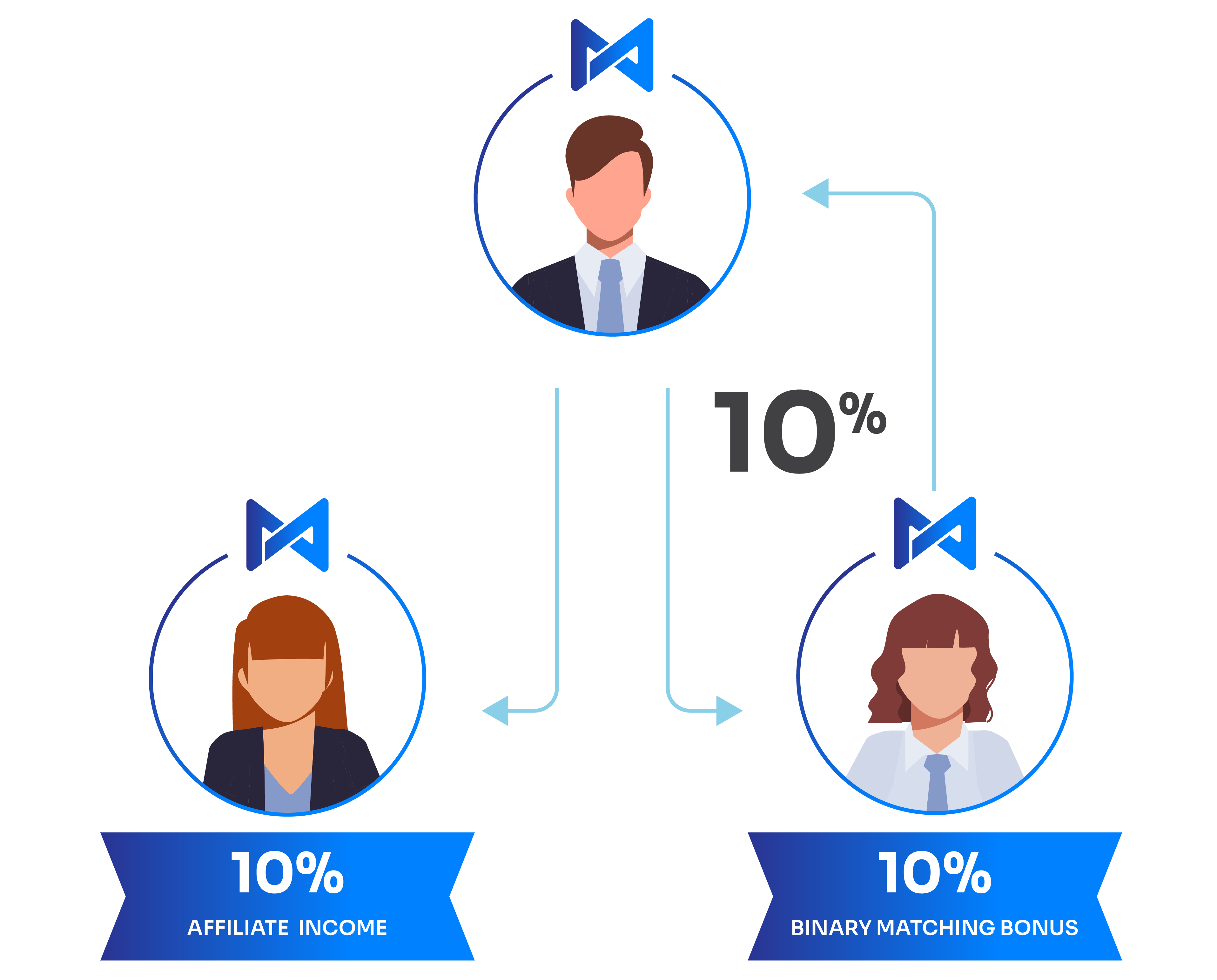 These are additional incomes to your earning. Affiliate Income of 10% is paid instantly to the referrer when the referee registers under the referrer using the unique registration link and does an investment. You can quickly build wealth through affiliate earnings. This gives you an extraordinary opportunity to generate money using your networking skills and to utilize their sources of funds to your advantage. Affiliate incomes can be earned in the following ways- Referral commission, Binary commission. In addition, these commissions are readily available for withdrawal daily and at any moment, encouraging users to take advantage of them. Affiliate income allows users to gain a complete understanding of the platform, empowering them to grow their finances efficiently.